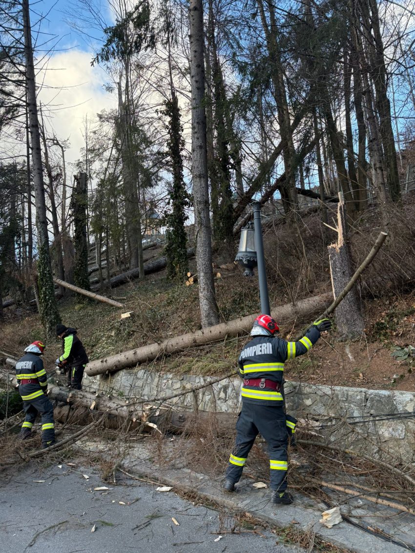 Copaci căzuți și un autoturism distrus în Sinaia, din cauza condițiilor extreme de pe Valea Prahovei | AUDIO