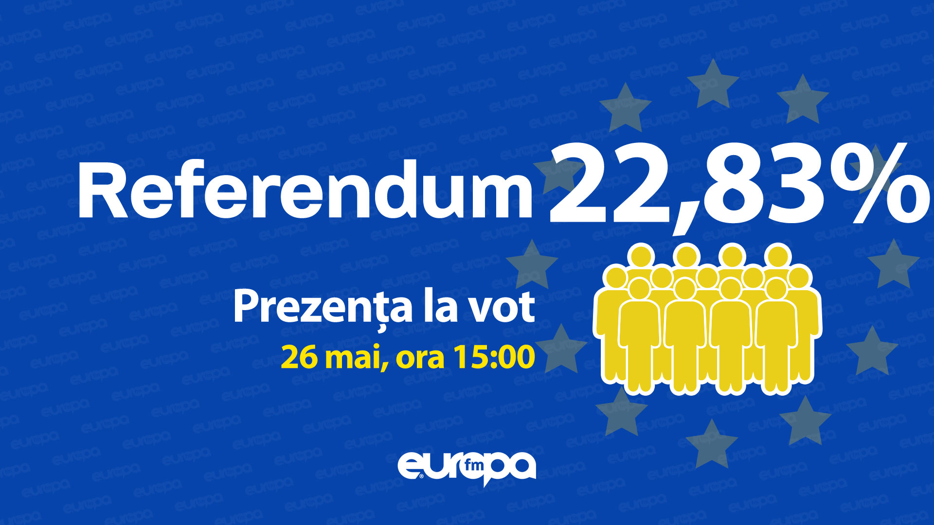 Prezenţa la urne pe ţară la Referendum a fost până la ora 15:00 de 22,83%. Cei mai mulți români s-au prezentat pentru Referendul în mediul urban – 2.512.524, iar în mediul rural – 1.658.314. La europarlamentare prezența la vot este de 27,68 %.