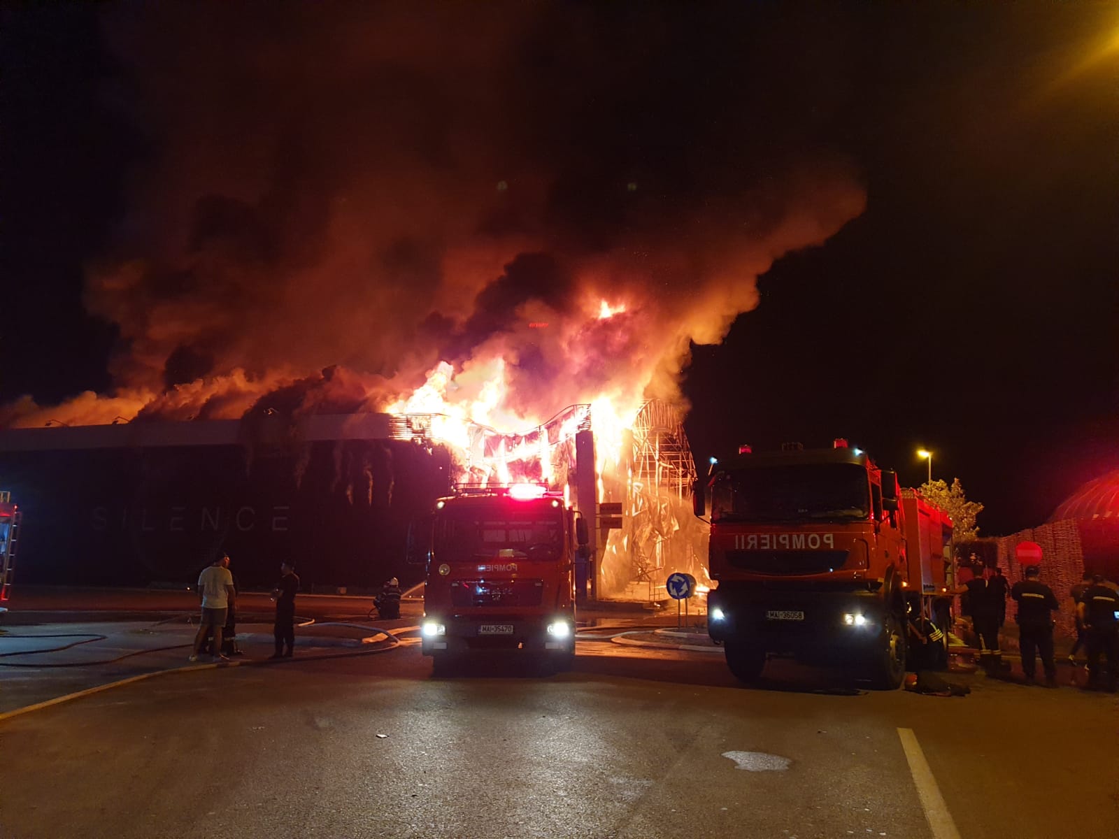 Mai bine de 7 ore s-au luptat pompierii ISU Dobrogea cu flăcările care au mistuit fostul Club Bamboo, actual Silence, din Mamaia Nord.