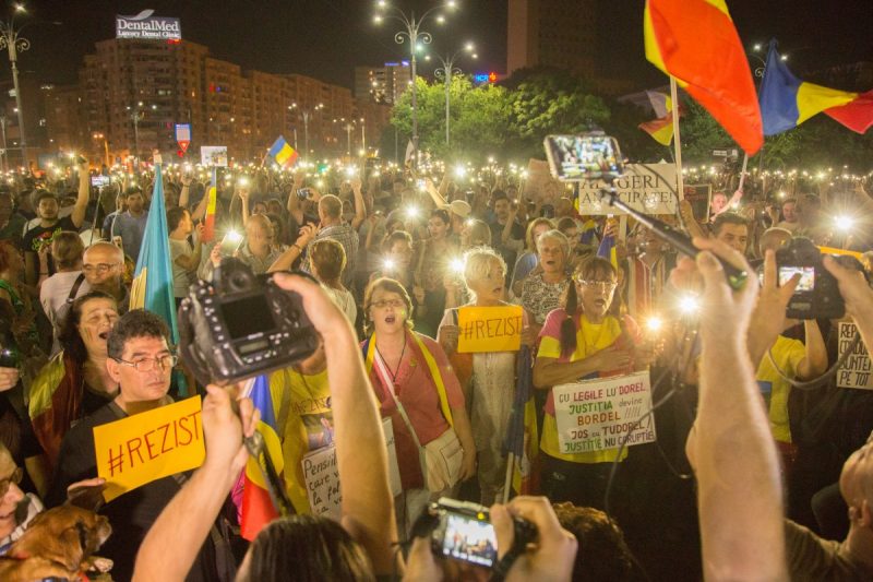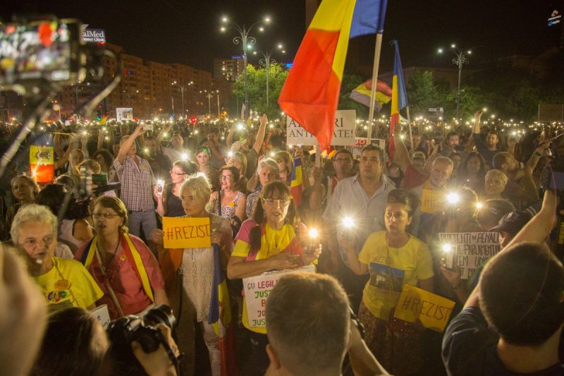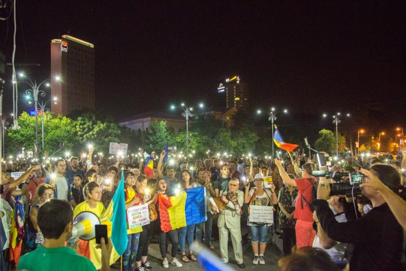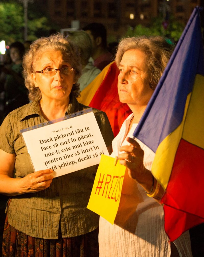 În București, protestatarii adunaţi în faţa sediului Guvernului au avut vuvuzele, tobe şi drapele tricolore şi au scandat, între altele, „Nu daţi înapoi – Venim peste voi!„, „Tudorele, nu uita, aşteptăm demisia!” „DNA să vină să vă ia!„, „Justiţie, nu corupţie!” şi „Hoţii! Hoţii!”.