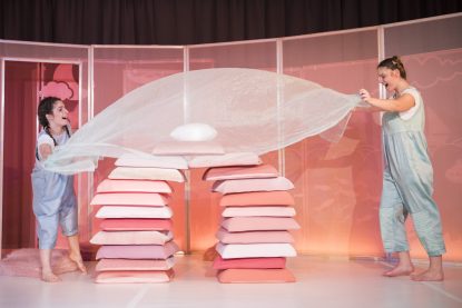 CUTInE este un spectacol care ne dă posibilitatea tuturor, de la mici la mari și de la mari la mici, să transformăm un spațiu și un obiect în ceea ce ne îndeamnă creativitatea. Vom pune cutie lângă cutie și vom forma prin dans, mișcare și emoție noi construcții: un zid, un tunel, un pod, un labirint, un bloc, o casă – locuri metaforice și locuri fizice pe care le vom explora în joacă în această aventură.