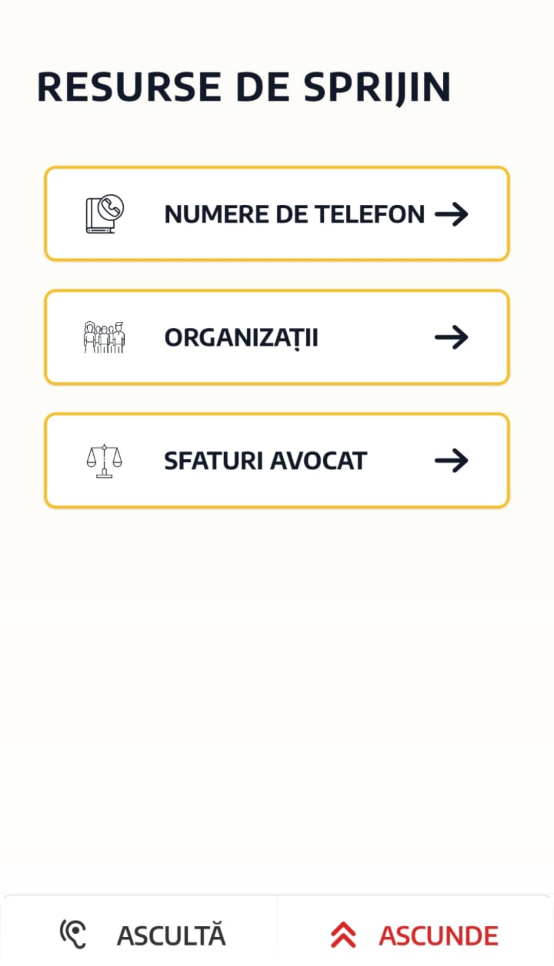 Aplicația Ceasul Bun are și informații educative despre tipuri de abuzuri și numere de telefon în caz de urgență.