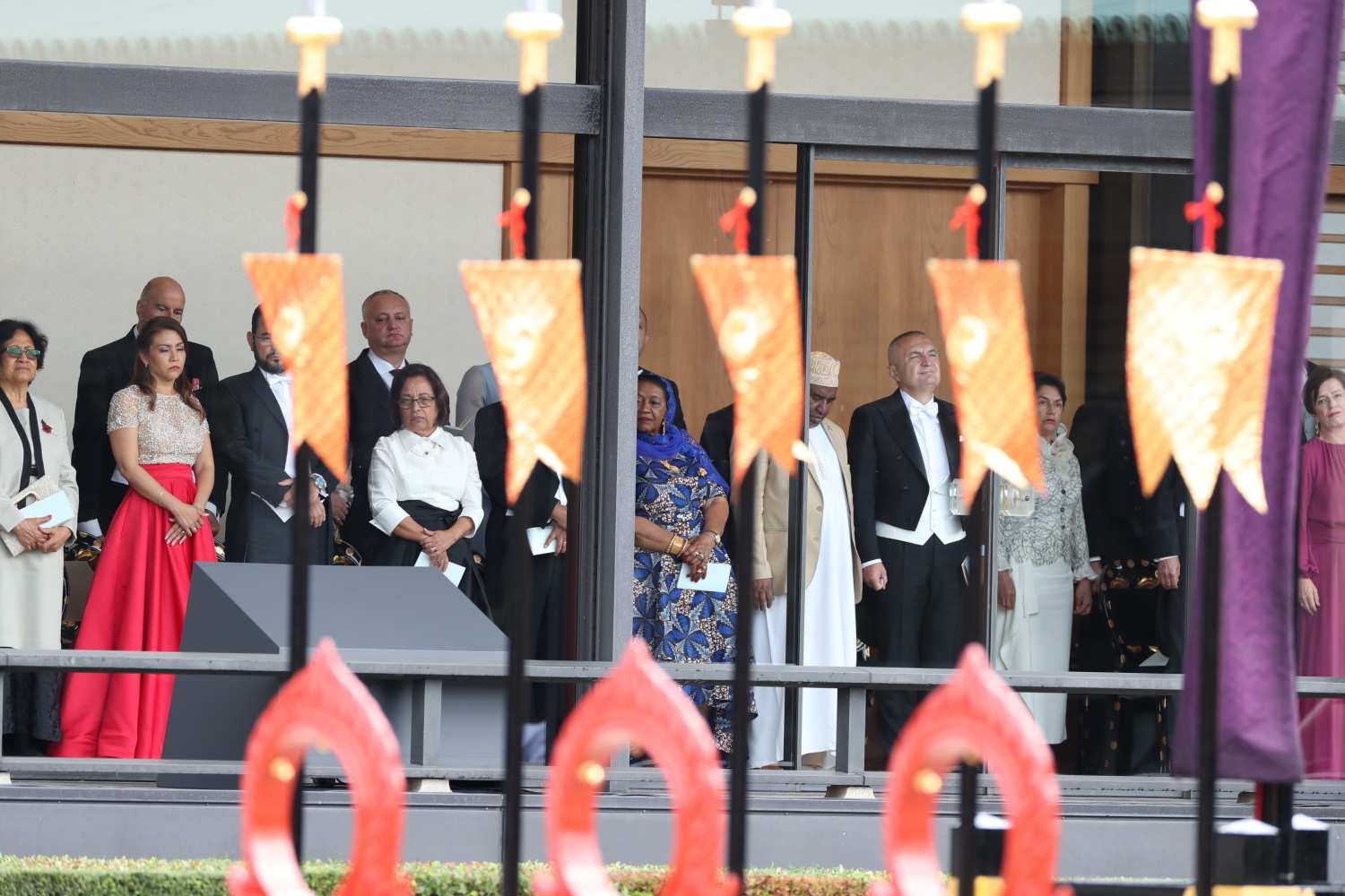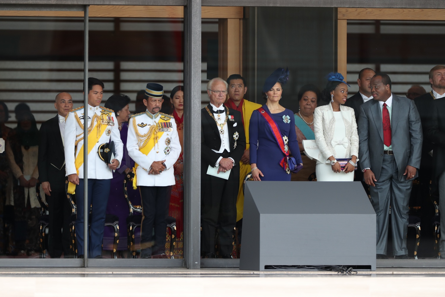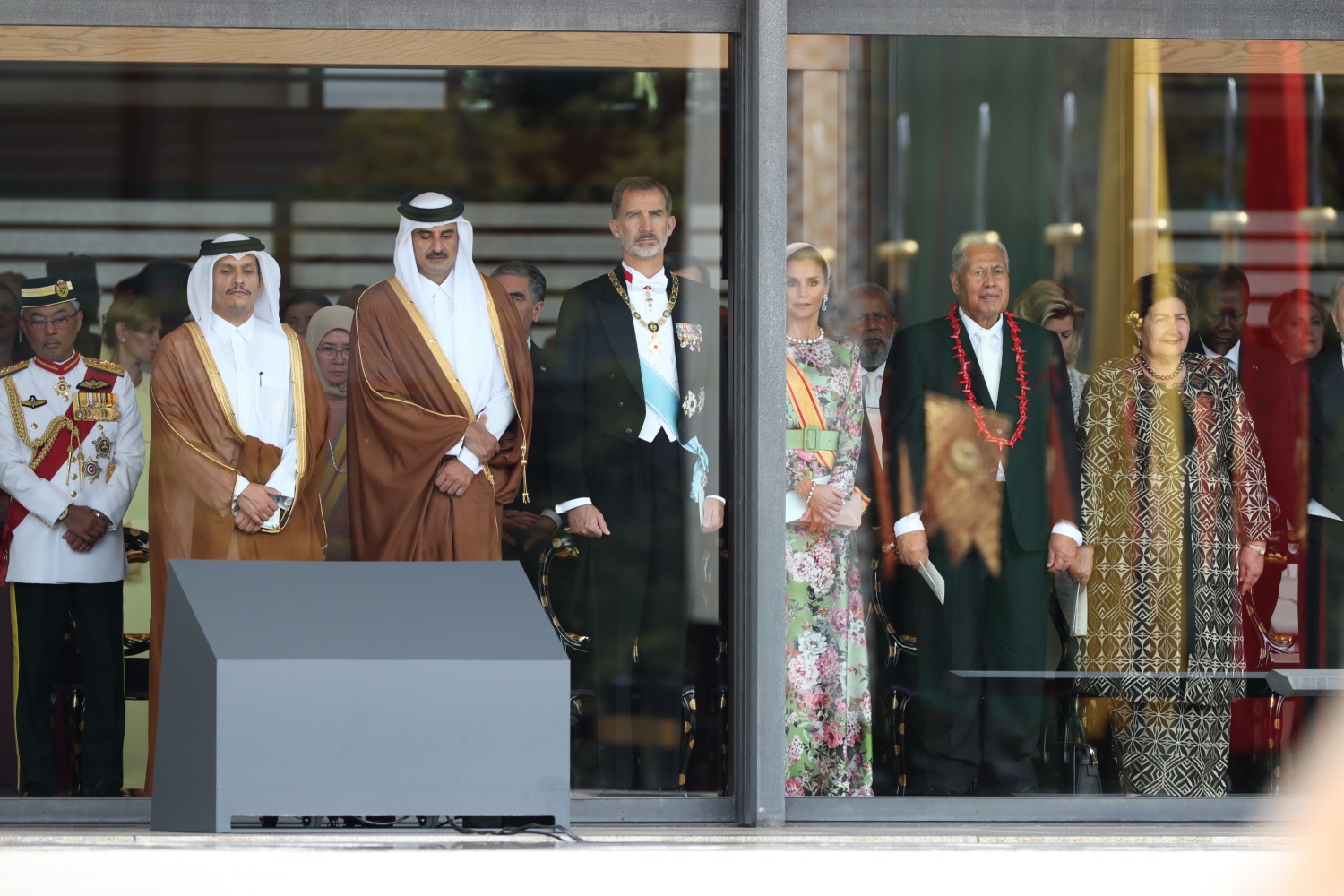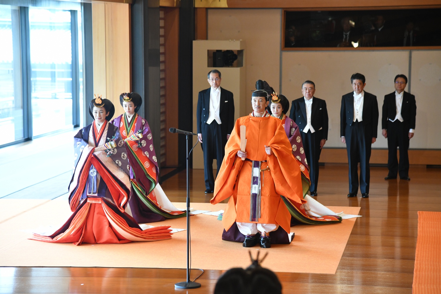 Dimineața devreme, Împăratul Naruhito a vizitat trei sanctuare, din cadrul Palatului, apoi a venit în Sala Tronului, unde era așteptat de familia imperială și de oaspeti veniti din toate colturile lumii.