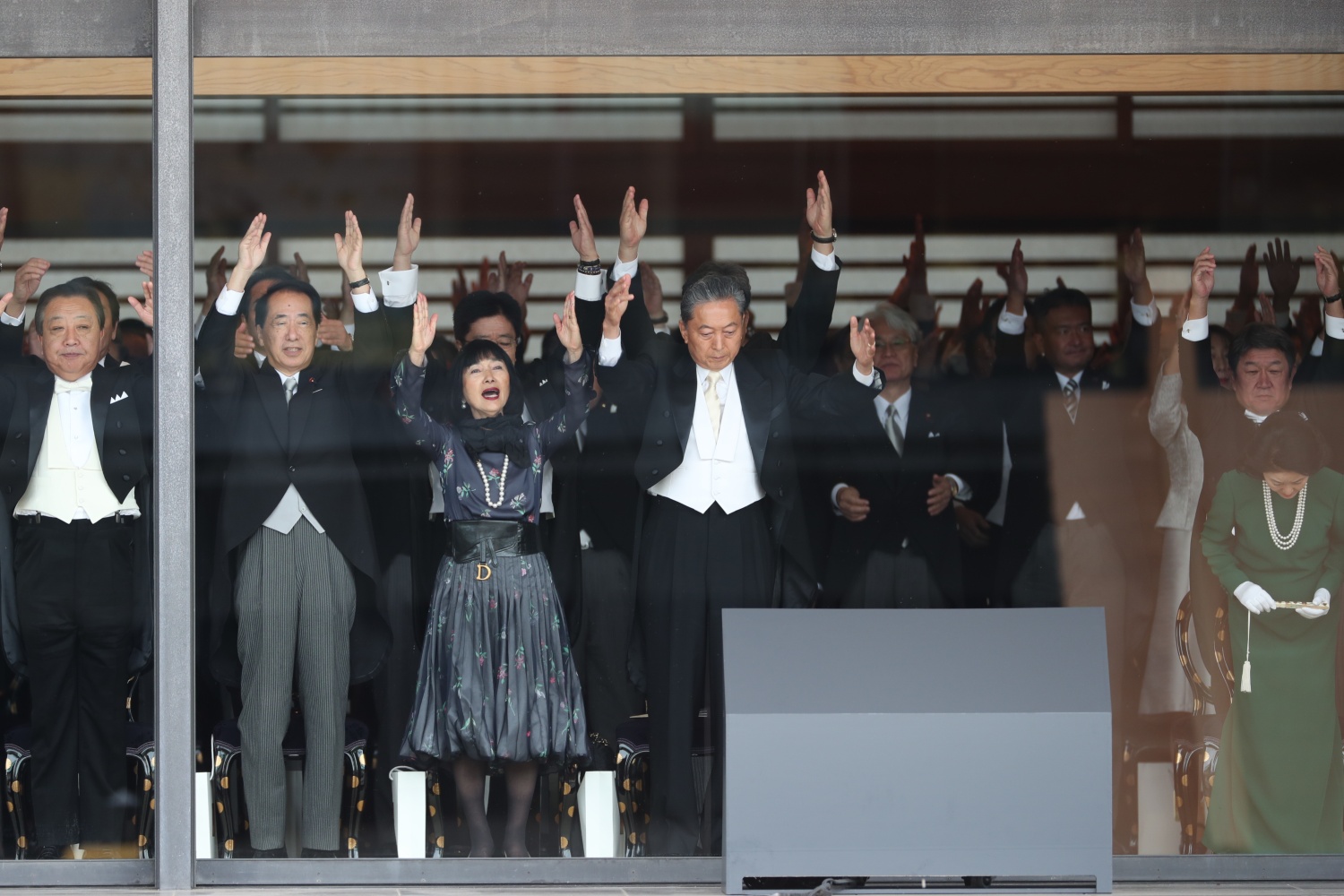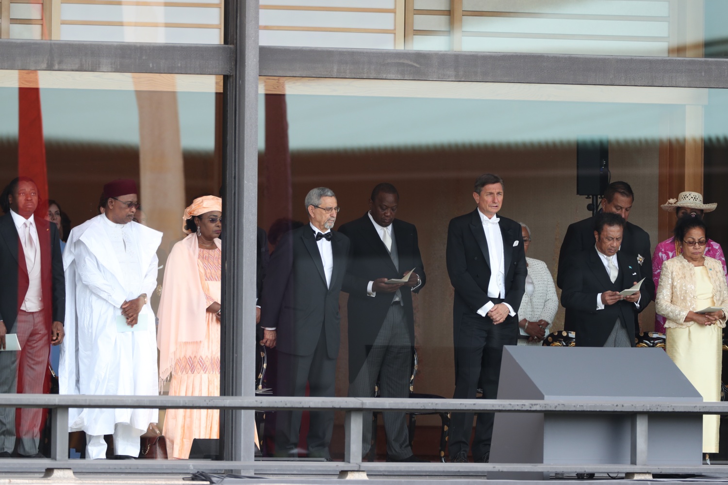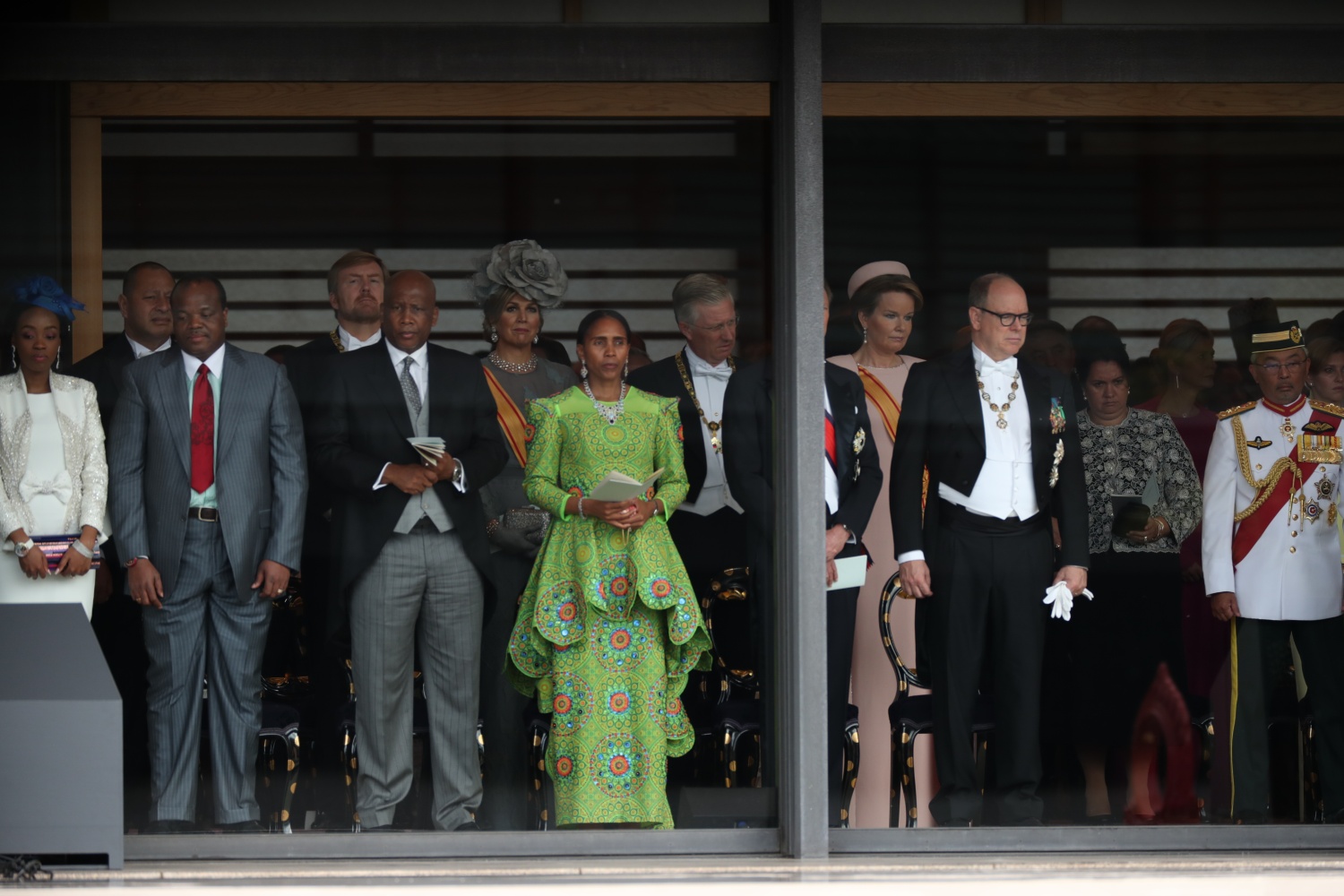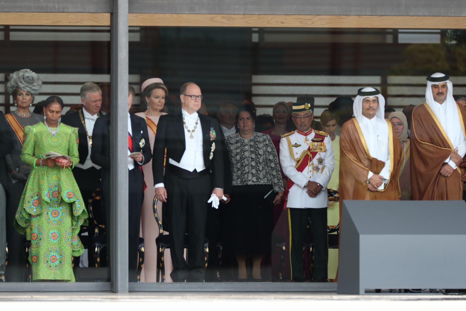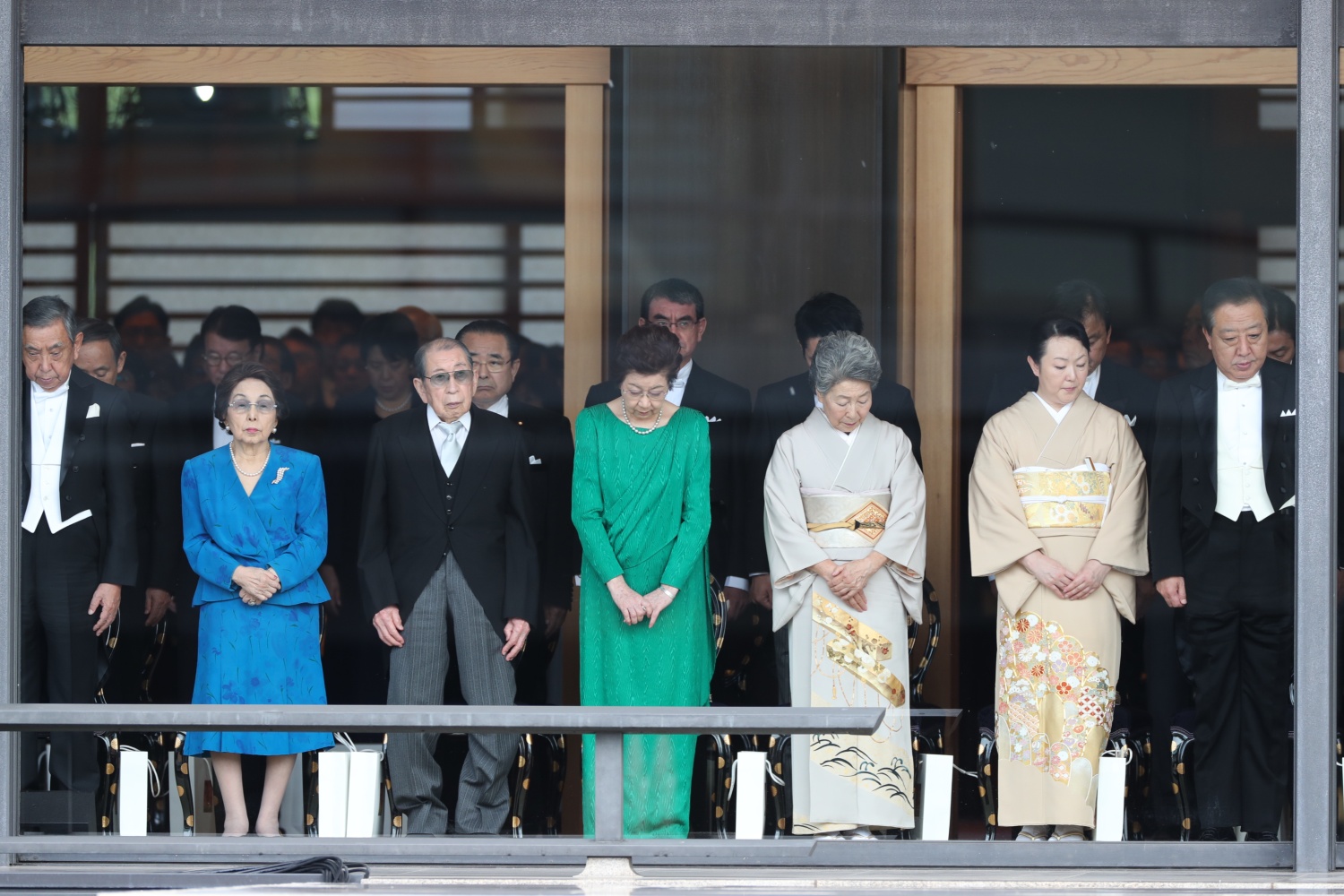 Dimineața devreme, Împăratul Naruhito a vizitat trei sanctuare, din cadrul Palatului, apoi a venit în Sala Tronului, unde era așteptat de familia imperială și de oaspeti veniti din toate colturile lumii.