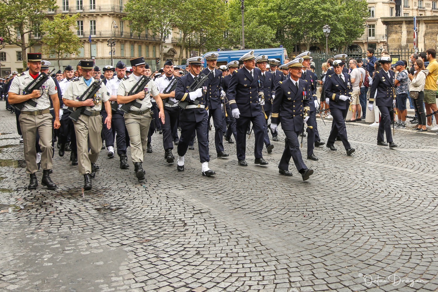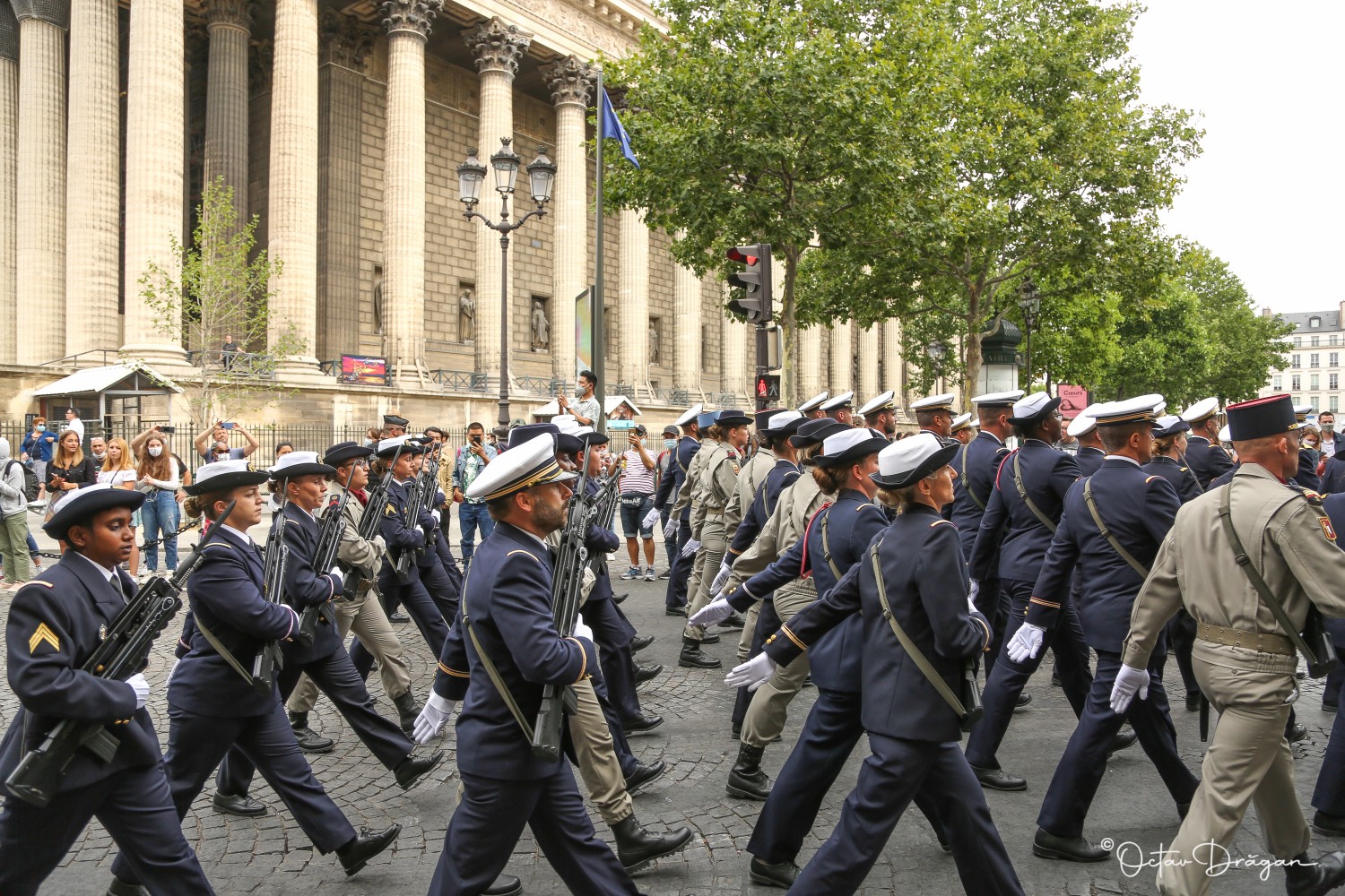 Ceremoniile fastuoase din anii trecuți au fost anulate în acest an, pe fondul pandemiei de coronavirus. Totuși, câțiva militari au defilat pe străzile din Paris, reamintind importanța zilei de 14 iulie pentru francezi. Fotograful Octav Drăgan, stabilit la Paris, a surprins în imagini modul în care s-au desfășurat azi o parte din ceremoniile de Ziua Naţională a Franței.