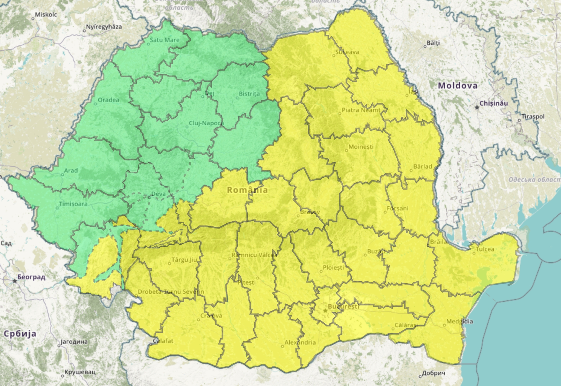 Cod galben de ninsori și lapoviță pentru 30 de județe și București