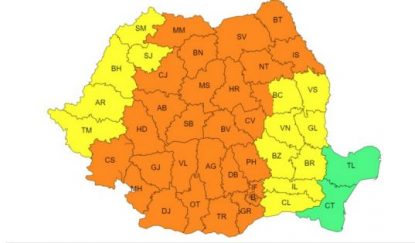 ANM anunță Cod portocaliu de ploi în Oltenia, cea mai mare parte a Transilvaniei și Munteniei, jumătatea de nord a Moldovei și local în Banat și în Maramureș, în intervalul marți, 2 iulie, ora 10:00 – miercuri, 3 iulie, ora 10:00. În Capitală, în cursul serii de marți, 2 iulie, sunt așteptate vijelii, averse torențiale, descărcări electrice și condiții de grindină.