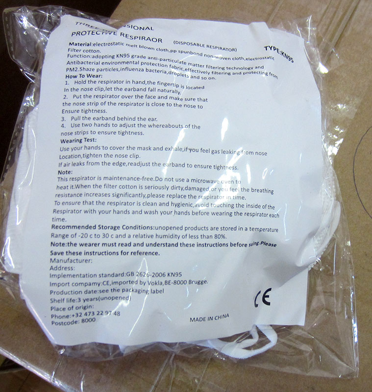 Între alerte mai este și un produs importat în UE de Vokla și comercializat într-o pungă de plastic care conține 10 măști de protecție.