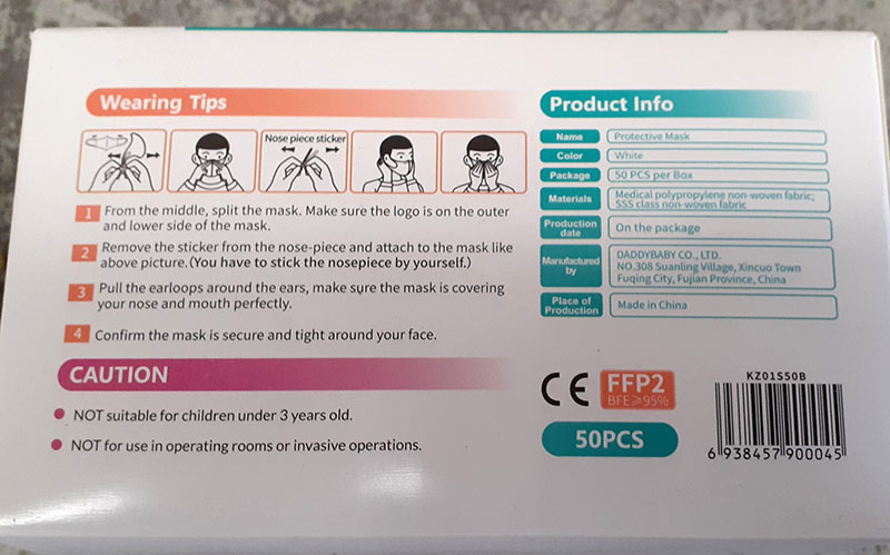 Pentru măștile Daddy Baby, importate din China, retenția de particule/filtrul materialului este insuficientă,iar o cantitate excesivă de particule sau de microorganisme poate trece prin mască, sporind riscul de infecție în cazul în care nu este combinată cu măsuri de protecție suplimentare.