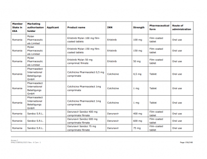 Lista medicamentelor semnalate în cazul României