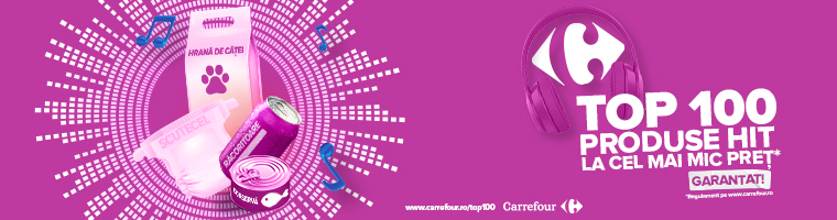 Vrei să arăți că nu doar Marius Moga se pricepe la hituri? Atunci acceptă provocarea Carrefour din Deșteptarea! Ascultă matinalul din 24 până în 28 octombrie: Vlad, George și Luca vor alege 3 produse din lista Carrefour Top 100 HIT! Tot ce ai de făcut este să mixezi produsele într-o formă inedită și originală (dacă le pui într-o melodie, cu atât mai bine :D). Lasă creația ta sub forma unui mesaj audio pe whatsapp la 0372.069.599 și ai șansa să câștigi în fiecare zi un voucher de cumpărături la Carrefour în valoare de 350 lei.