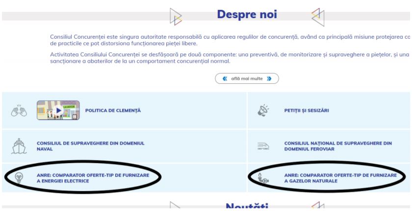Ca urmare, Consiliul Concurenței și ANRE au decis ca cele două platforme pentru compararea ofertelor (gaze naturale și energie electrică) să poată fi accesate și de pe site-ul autorității de concurență, datele și informațiile din aplicație fiind furnizate de ANRE”, a transmis Consiliul Concurenței.