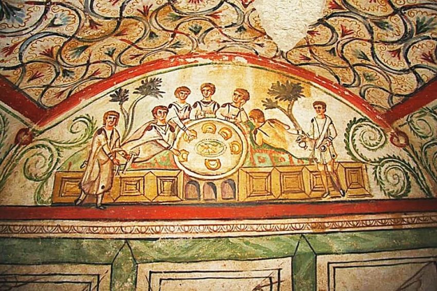 „Deși nu se regăsesc foarte multe simboluri creștine, de exemplu crucea, se găsesc alte simboluri ascunse. Se știe foarte bine că în secolul IV creștinii încă erau persecutați, dar banchetul funerar, păunii și porumbeii care beau apă dintr-un cantaru sunt simboluri creștine cu siguranță”.