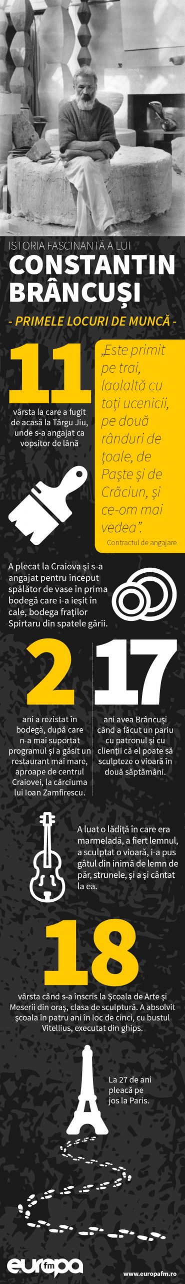 Constantin Brâncuşi, primele locuri de muncă – INFOGRAFIC