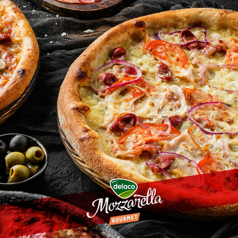 Mozzarella Delaco este făcută special pentru preparate calde. Brânză mozzarella maturată e apropiată ca textură de binecunoscutul cașcaval. O recomandăm în special pentru sendvișuri, paste, lasagna și bineînțeles, pizza. Datorită texturii sale mai ferme, se lucrează foarte bine cu ea în bucătărie: se taie și se răzuie ușor, iar în final se topește apetisant peste gustările pregătite.