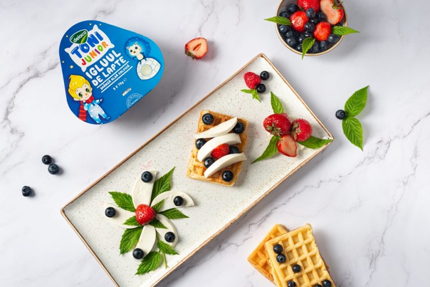 Toni Junior de la Delaco propune brânza albă calcică, alături de fructe de sezon pentru un mic dejun sau o gustare delicioasă, pe placul voinicilor gata ca să pornească înspre noi aventuri!