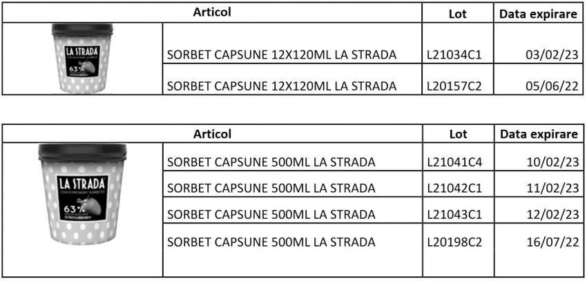 Este vorba de mai multe loturi de înghețată La Strada Capșune.
