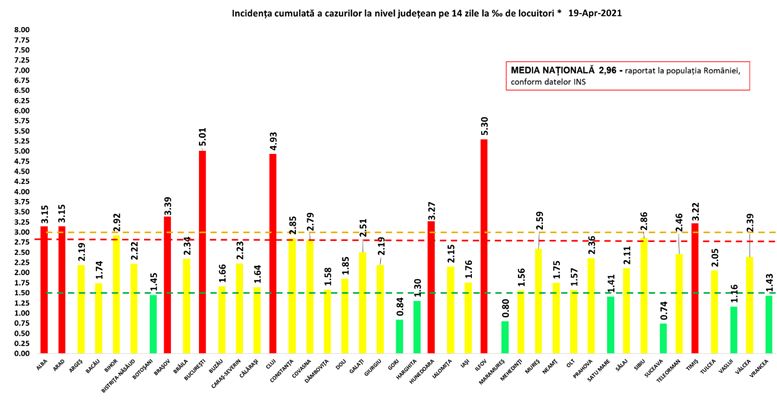 Până astăzi, 19 aprilie, pe teritoriul României au fost confirmate 1.031.072 de cazuri de persoane infectate cu coronavirus, dintre care 26.381 de persoane diagnosticate cu infecția COVID-19 au decedat. Autoritățile mai anunță că 944.774 de persoane au fost declarate vindecate.
