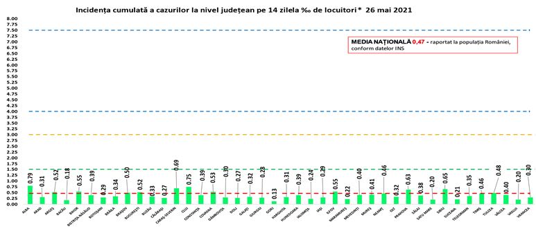 | Nr. crt. | Județ | Număr de cazuri confirmate(total) | Număr de cazuri nou confirmate | Incidența înregistrată la 14 zile |
