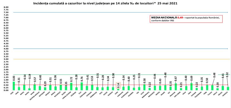 | Nr. crt. | Județ | Număr de cazuri confirmate(total) | Număr de cazuri nou confirmate | Incidența înregistrată la 14 zile |