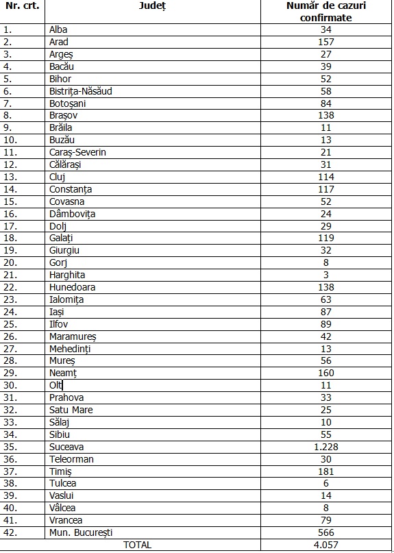 Grupul de Comunicare Strategică a anunțat, luni, că numărul infectărilor cu noul coronavirus a ajuns la 4.057, în creștere cu 193.