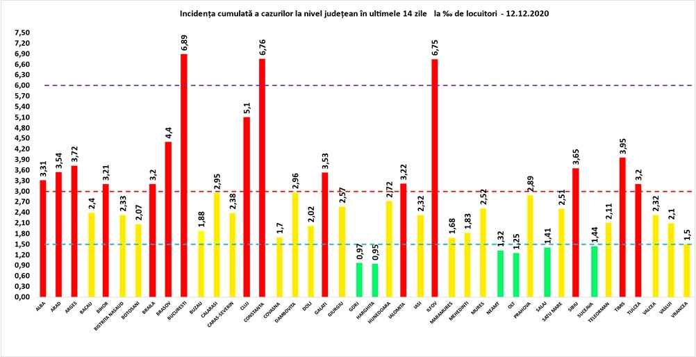 | Nr. crt. | Județ | Număr de cazuri confirmate(total) | Număr de cazuri nou confirmate | Incidența înregistrată la 14 zile |