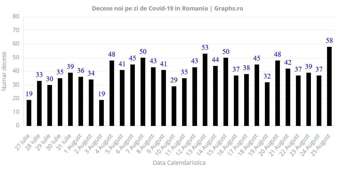 Astfel, pe data de 7 august, Grupul de Comunicare Strategică anunța 50 de noi decese, alături de 1.378 de noi cazuri, un record și în această privință.