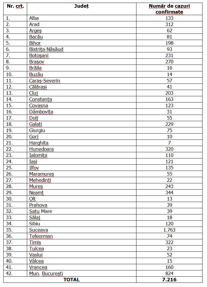 Coronavirus în România: Bilanțul a ajuns la 7.216 de infectări. S-au vindecat 1.217 persoane
