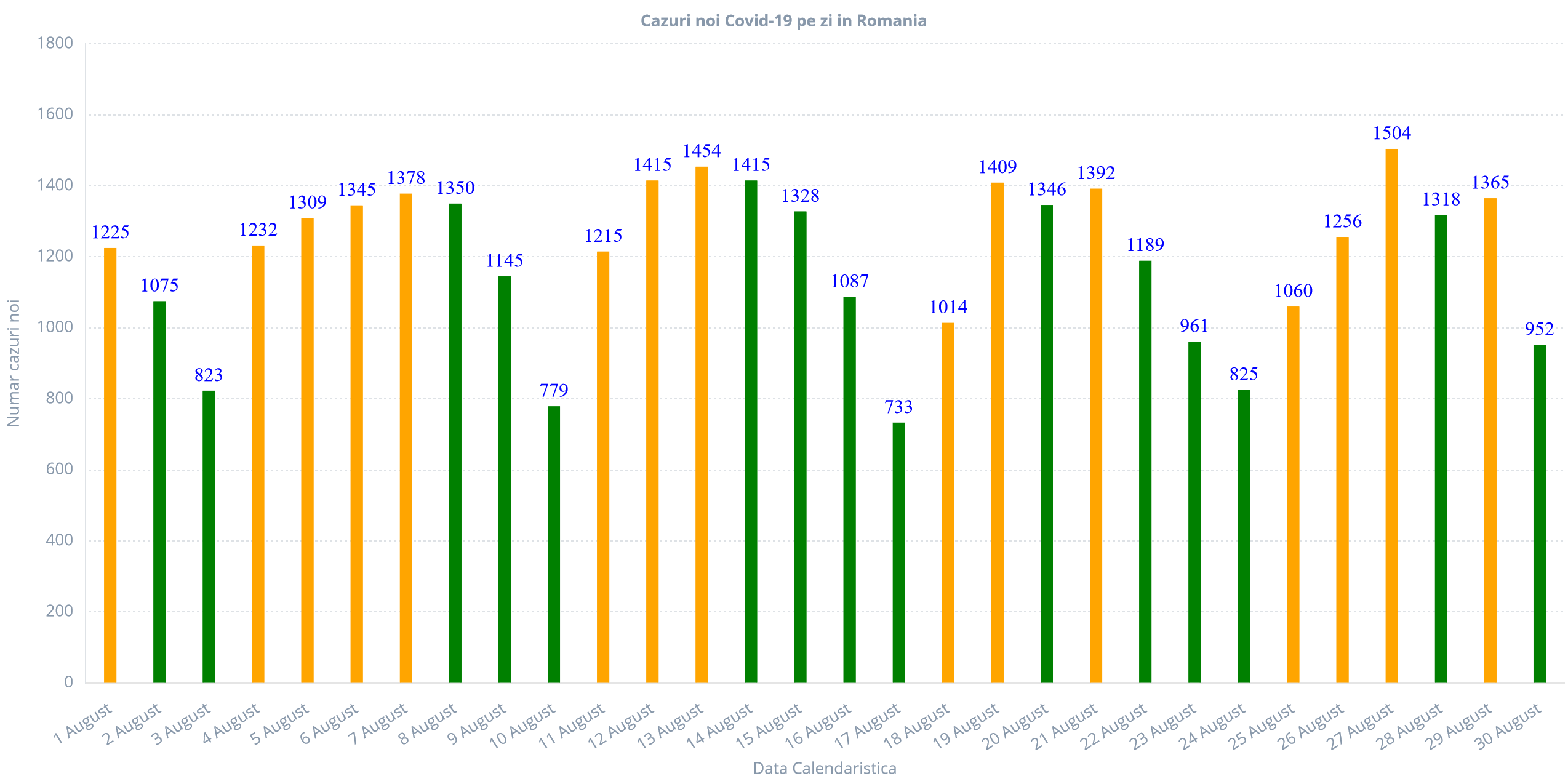 Cum a evoluat numărul cazurile de COVID-19 în România în ultima lună