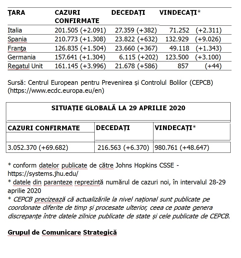 Dintre cetățenii români confirmați cu noul coronavirus, 21 au fost declarați vindecați (9 în Germania, 8 în Franța, 2 în Indonezia, unul în Luxemburg și unul în Tunisia).