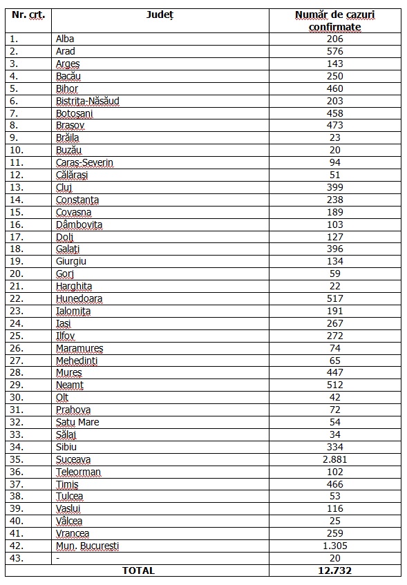 Bilanțul epidemic urcă la 12.732 de cazuri în România.