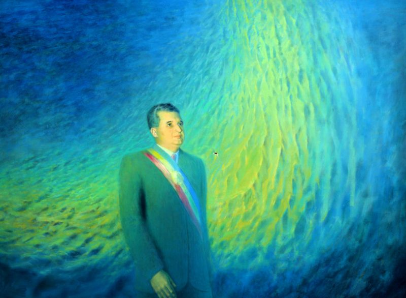 Așa a ajuns să se facă un tractor care avea pe el chipul lui Nicolae Ceaușescu sau un tablou în care zeci de perechi de ciorapi îi alcătuiau portretul.