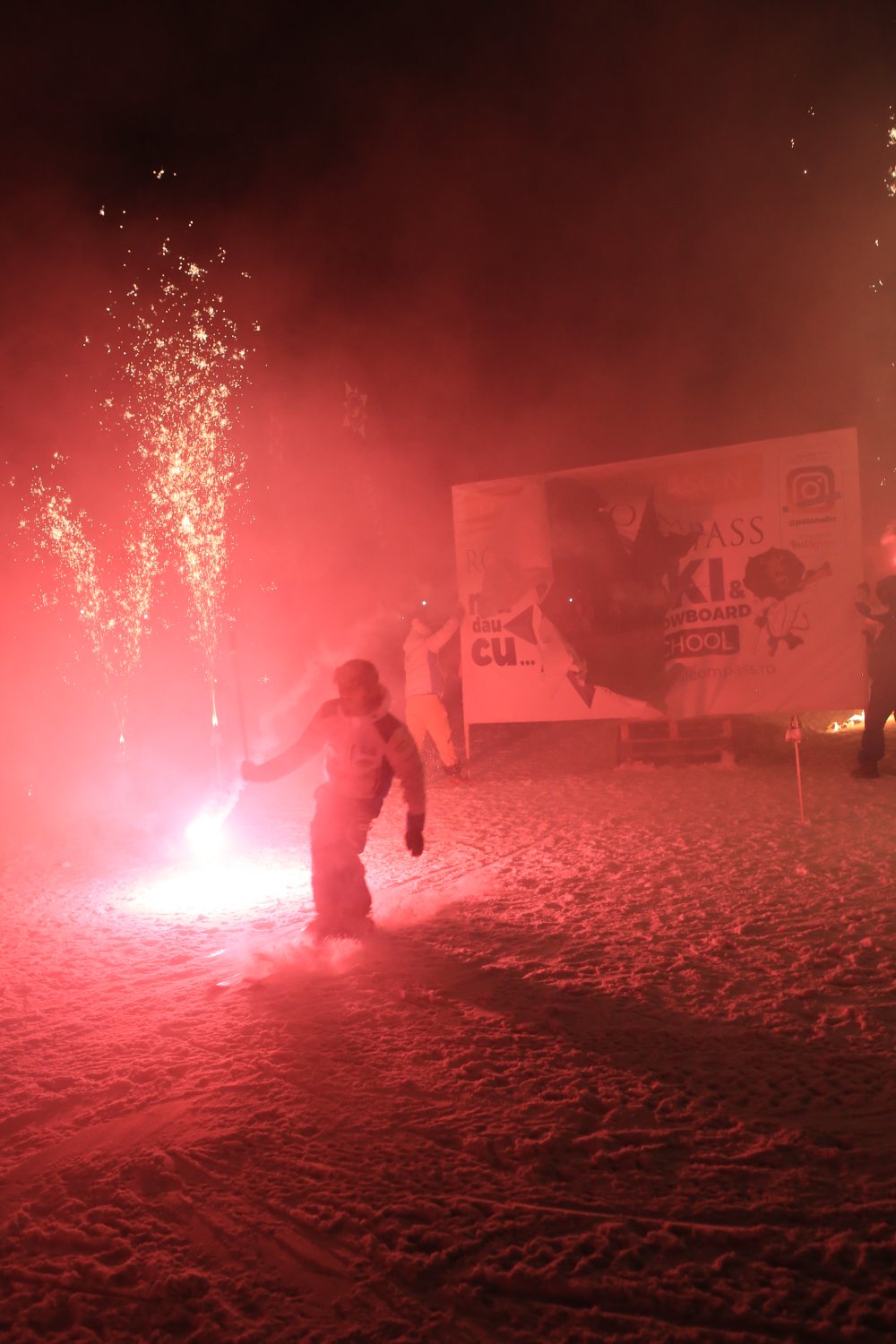 Fotograful Antonel Burlibașa a surprins în imagini spectacolul torțelor și showul laser Live pe Pârtie din Poiana Brașov: