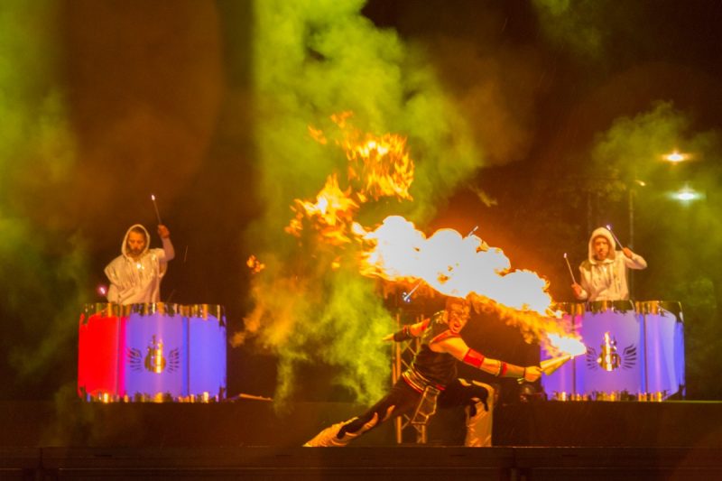 Spectacolul de lasere, proiecții, acrobații, dans este completat de tobe live și de cele mai spectaculoase numere de circ.