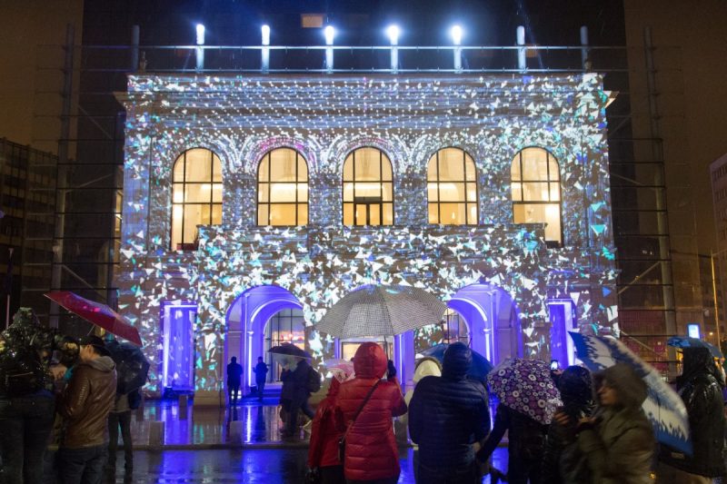 O instalație de lumină care se folosește de fiecare detaliu arhitectural al clădirii pentru a transforma fațada Bibliotecii Centrale Universitare într-o proiecție artistică de dimensiuni impresionante.