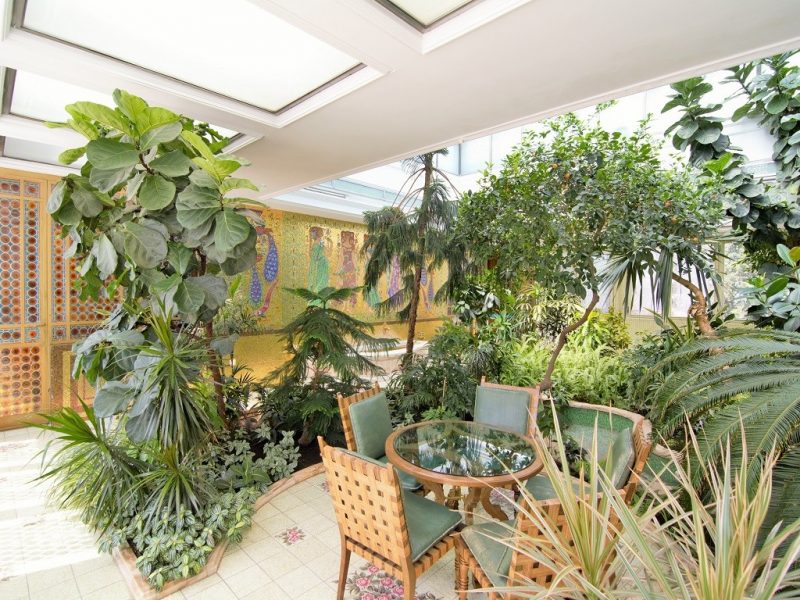 Sera interioară. Grădina oferă o varietate bogată de plante exotice și mediteraneene precum mandarinul sălbatic amplasat în centrul acesteia sau mini-palmierii poziționați de jur-împrejur. Un alt element important este plafonul retractabil al încăperii care este de fapt un impunător iluminator, atât cu lumină naturală precum și artifcială în timpul serii.