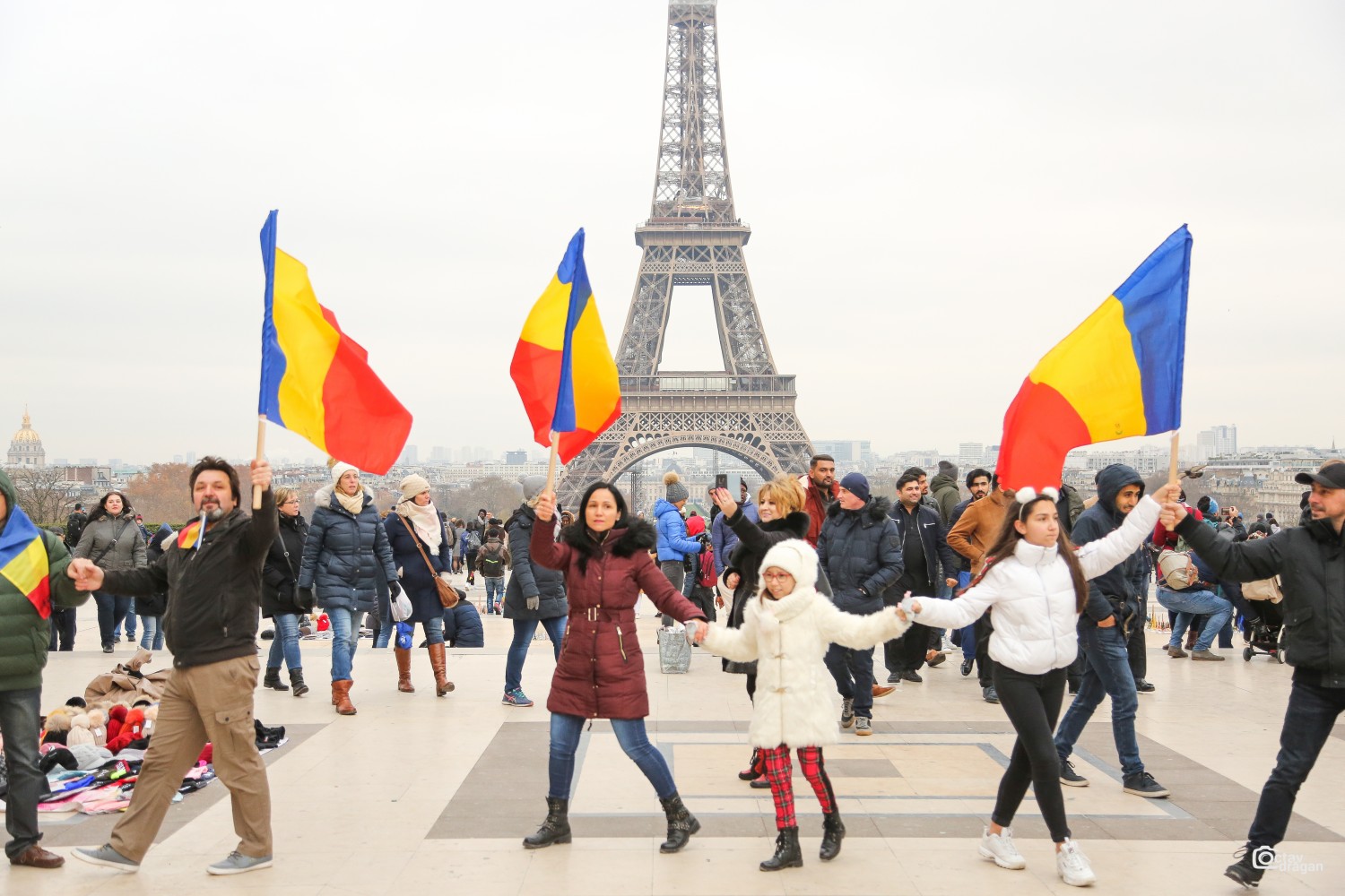 Fotograful Octav Drăgan a surprins momentul în care steagurile românești au fost fluturate în zone emblematice ale Parisului, cu ocazia zilei de 1 Decembrie, Ziua Marii Uniri.