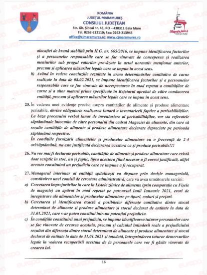 Raport oficial: Diferențele amintite s-au concretizat la nivelul lunii Ianuarie 2021 într-o economie la bugetul SJUBM de 58 776,071 RON, alocată preparării hranei pentru bolnavi, necheltuită, însă, în acest scop.