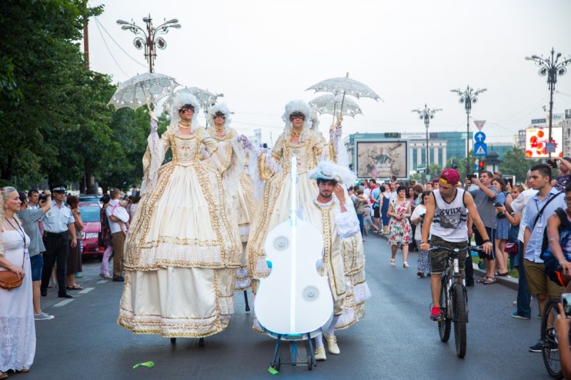 Astfel, în timpul zilei, străzile vor fi împânzite de spectacole itinerante ale artiștilor pe catalige, performance-uri participative, spectacole de magie și street dance, statui vivante, personaje supradimensionate și parade de culoare, dans și muzică.