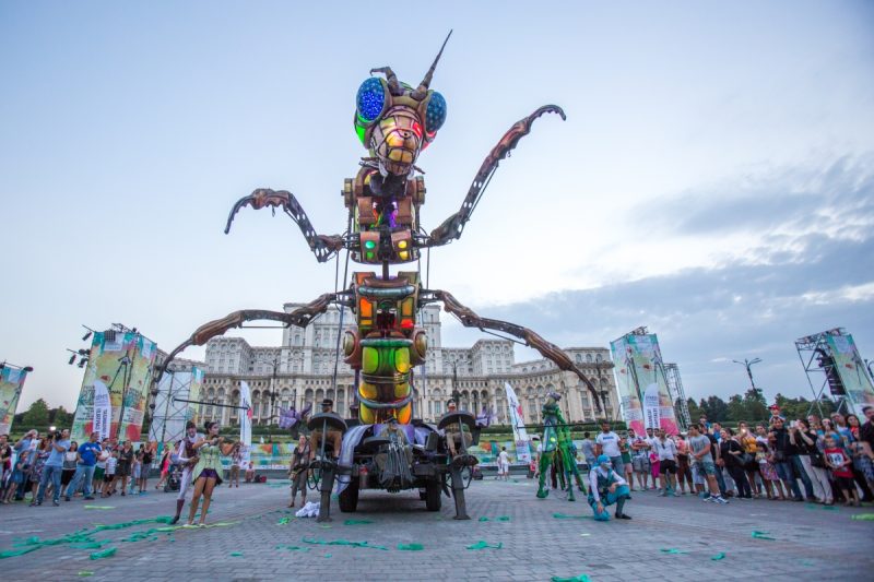 Deschiderea Festivalului Internațional de Teatru de Stradă București – B-Fit in the Street! a avut loc loc sâmbătă, începând cu ora 19:00, și a fost marcată prin trei momente spectaculoase semnate de companii internaționale de teatru urban.