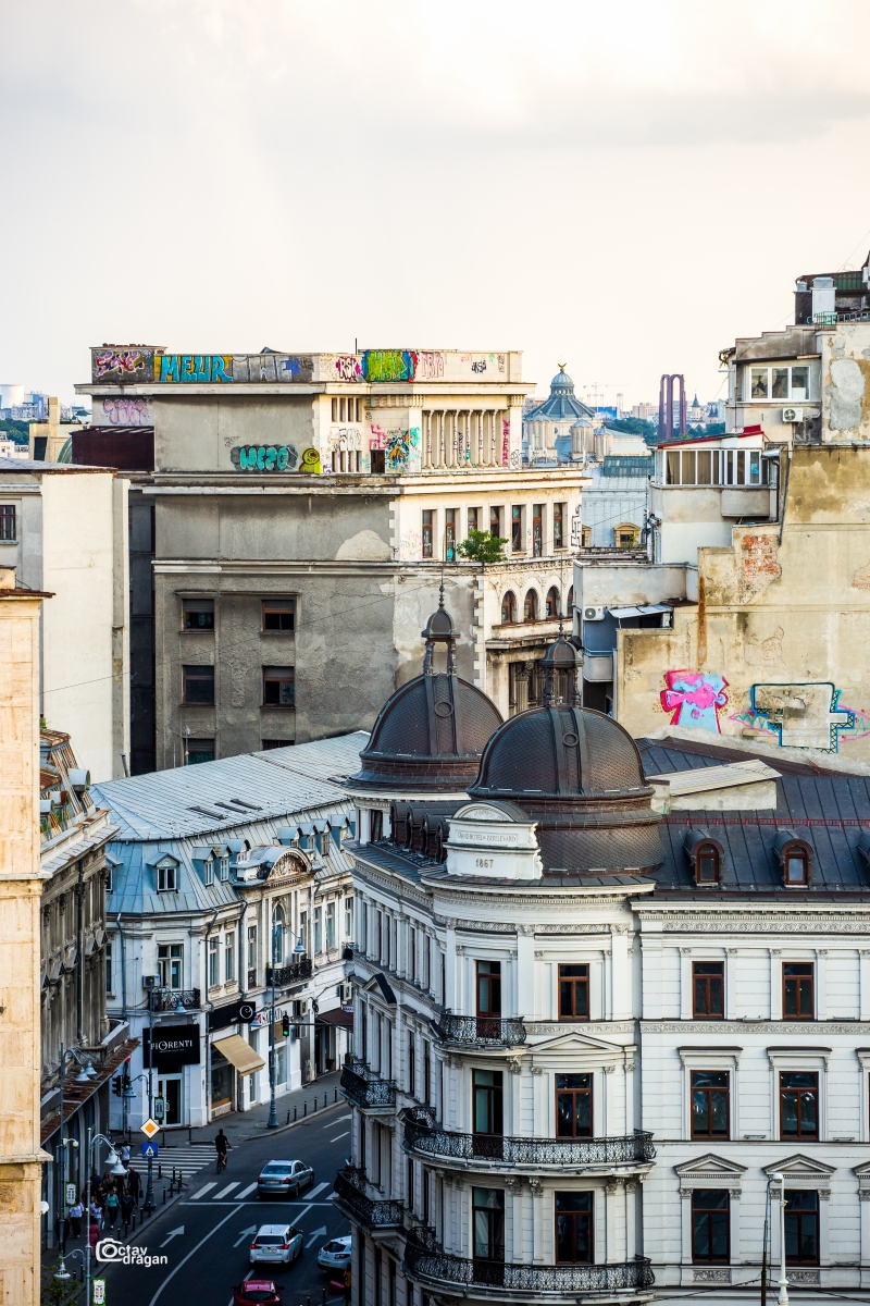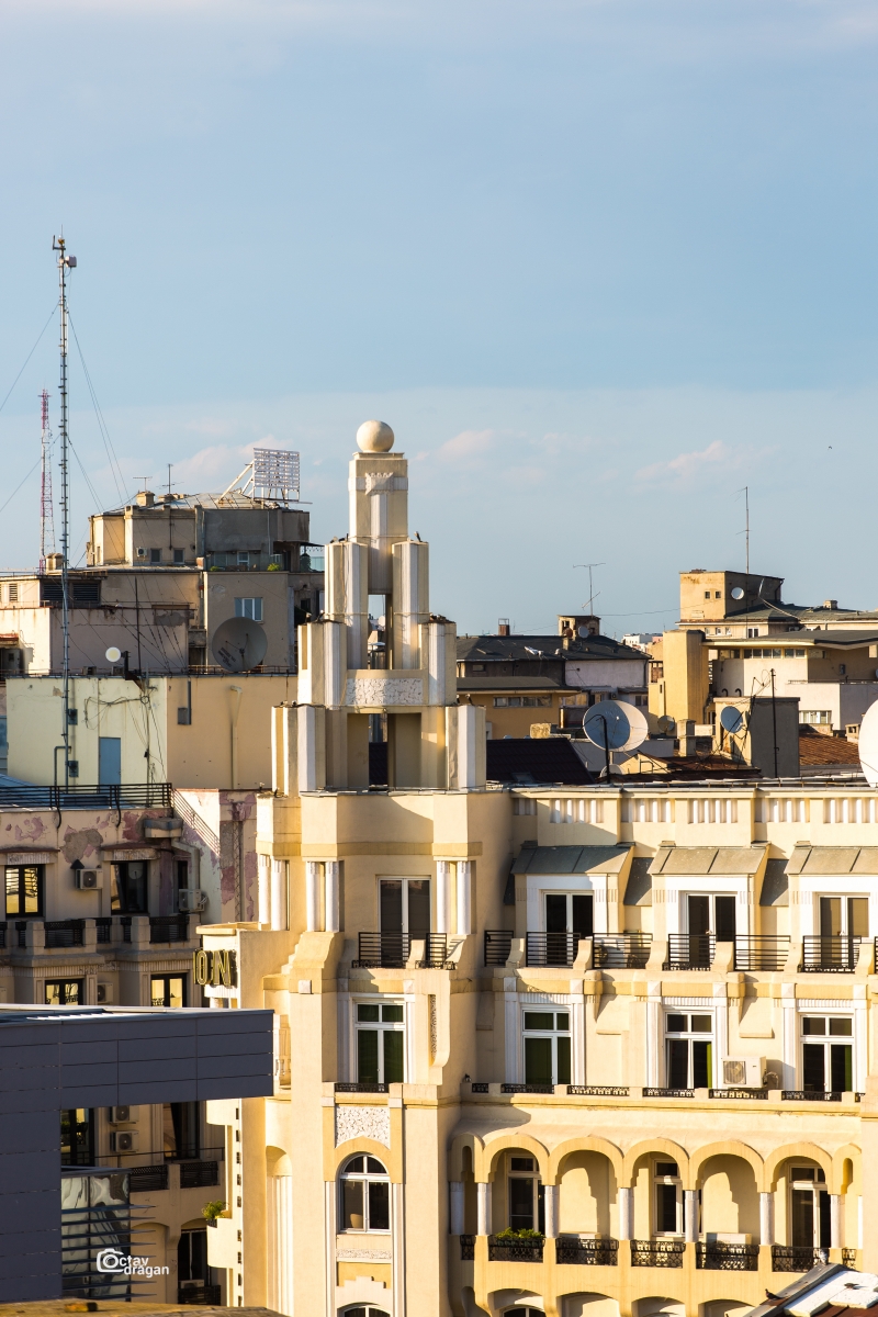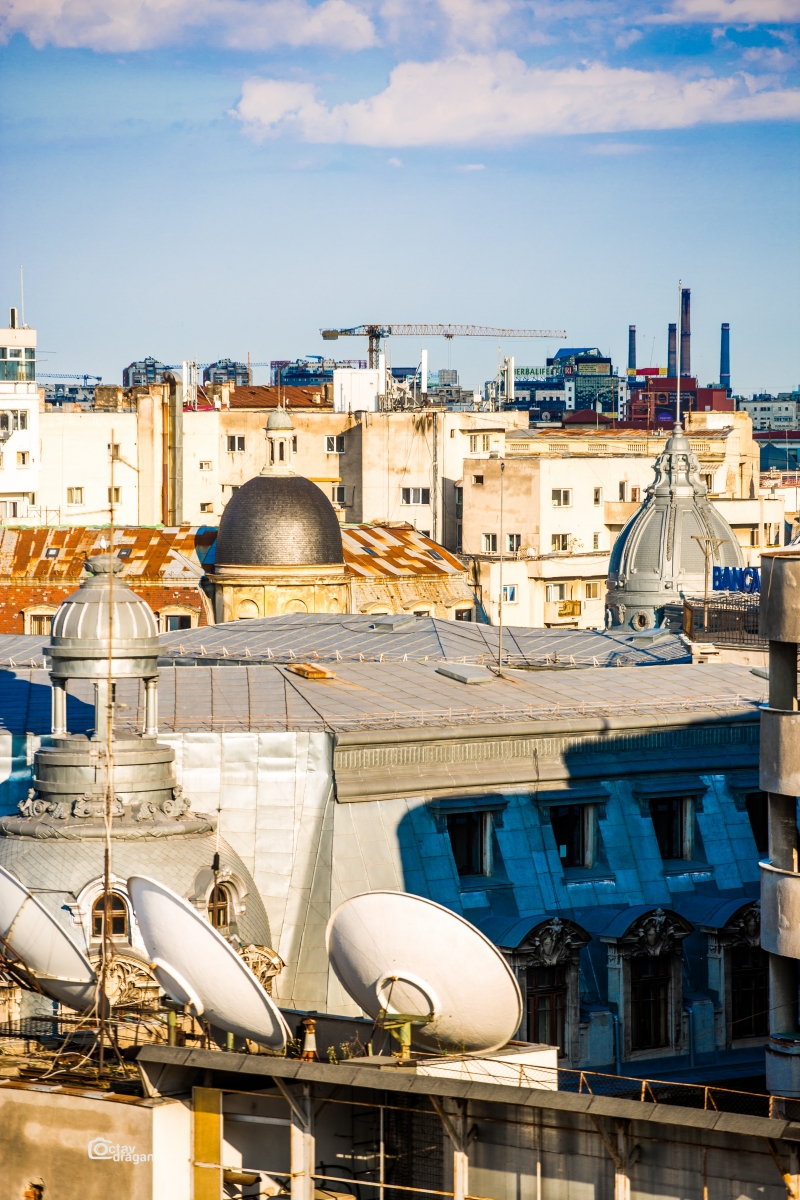 Pe acoperișul unei clădiri înalte din centrul Capitalei, fotograful Octav Drăgan a surprins contrastele Bucureștiului, un oraș în care noul stă lângă vechi iar istoria se ascunde în spatele ignoranței celor care lasă să se degradeze clădiri simbol.