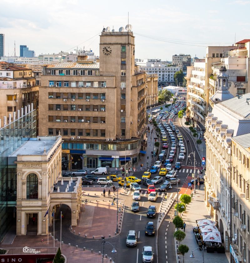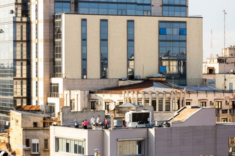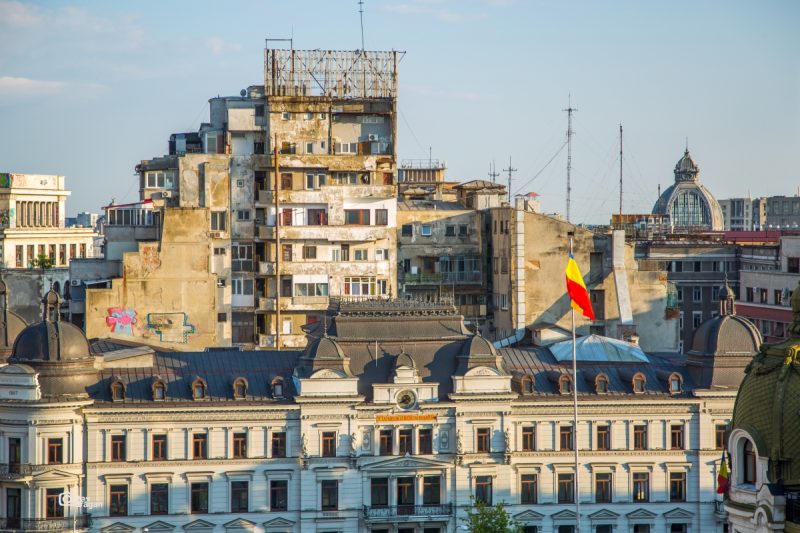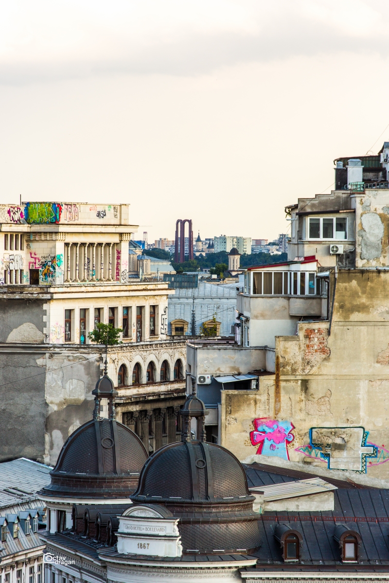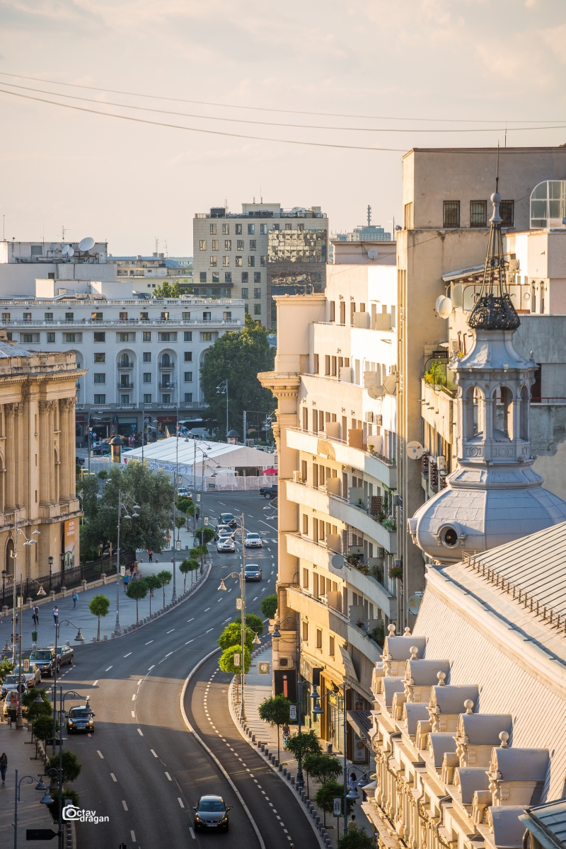 Pe acoperișul unei clădiri înalte din centrul Capitalei, fotograful Octav Drăgan a surprins contrastele Bucureștiului, un oraș în care noul stă lângă vechi iar istoria se ascunde în spatele ignoranței celor care lasă să se degradeze clădiri simbol.