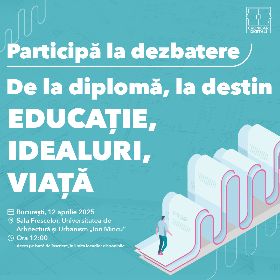 Locurile sunt limitate. Pentru program și înscrieri, accesați următorul link: https://cronicaridigitali.ro/de-la-diploma-la-destin/