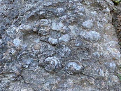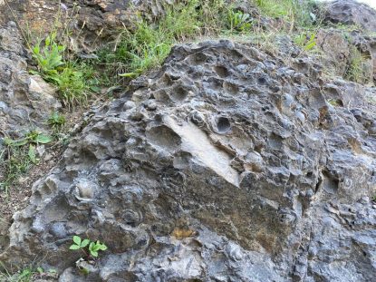 Pe acest deal, s-au pietrificat mii de melci de diferite forme și mărimi, care au trăit aici cu zeci de milioane de ani în urmă, pe vremea dinozaurilor. Se pot observa cu ușurință formele lor și încă se mai simte textura cochiliilor.