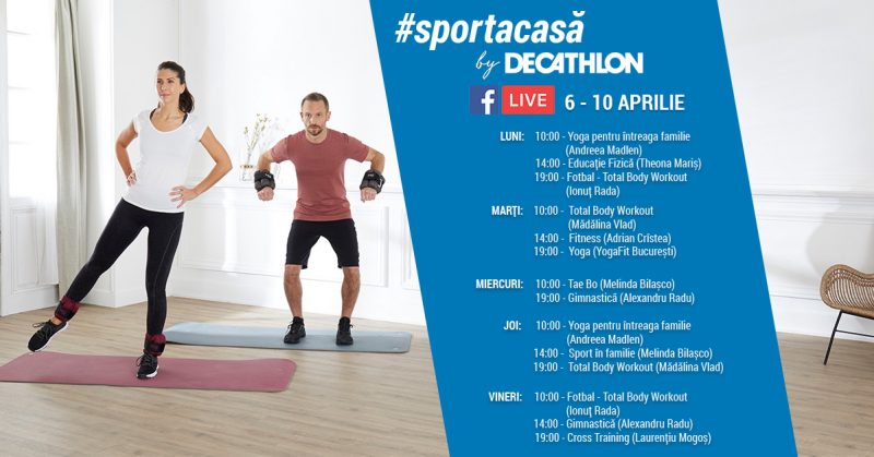 Astfel, Decathlon vine în ajutorul tuturor printr-o serie de live-uri cu antrenori din diferite sporturi, pe pagina de Facebook Decathlon Romania.