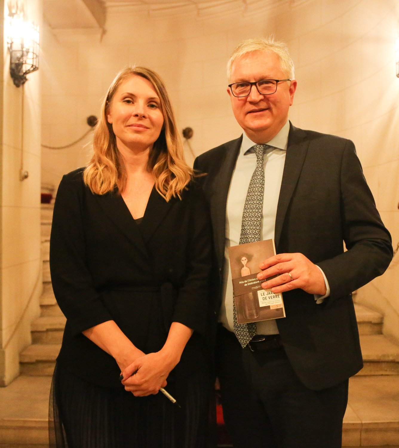 De altfel, ceremonia de decorare a avut loc cu ocazia lansării acestui volum în limba franceză, „Le jardin de verre” (traducere Philippe Loubière, Editions des Syrtes), prezentarea cărții fiind moderată de către jurnalista literară Cristina Hermeziu.