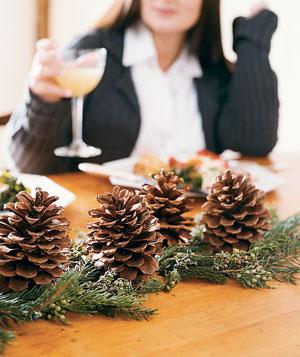 De-a lungul mesei se aranjează un rând de crenguţe de brad, iar apoi se decorează folosind conuri de brad.