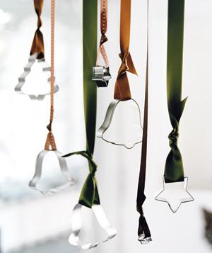 Formele de prăjituri pot juca rolul unor decorațiuni speciale dacă sunt legate cu nişte fundiţe colorate şi agăţate la fereastră. Aceste ornamente sunt gata într-o clipită.