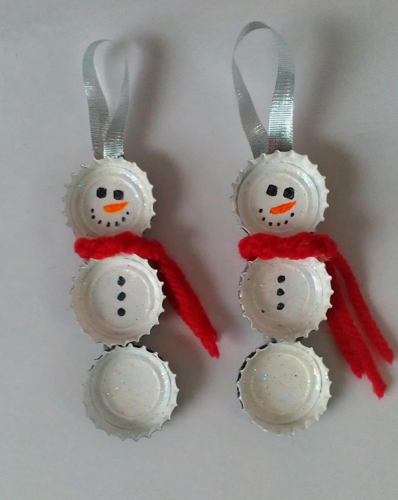 Se poate realiza un om de zăpadă original din trei capace de sticlă. Pentru construirea lui este nevoie doar de carioca, lipici şi un șnur.