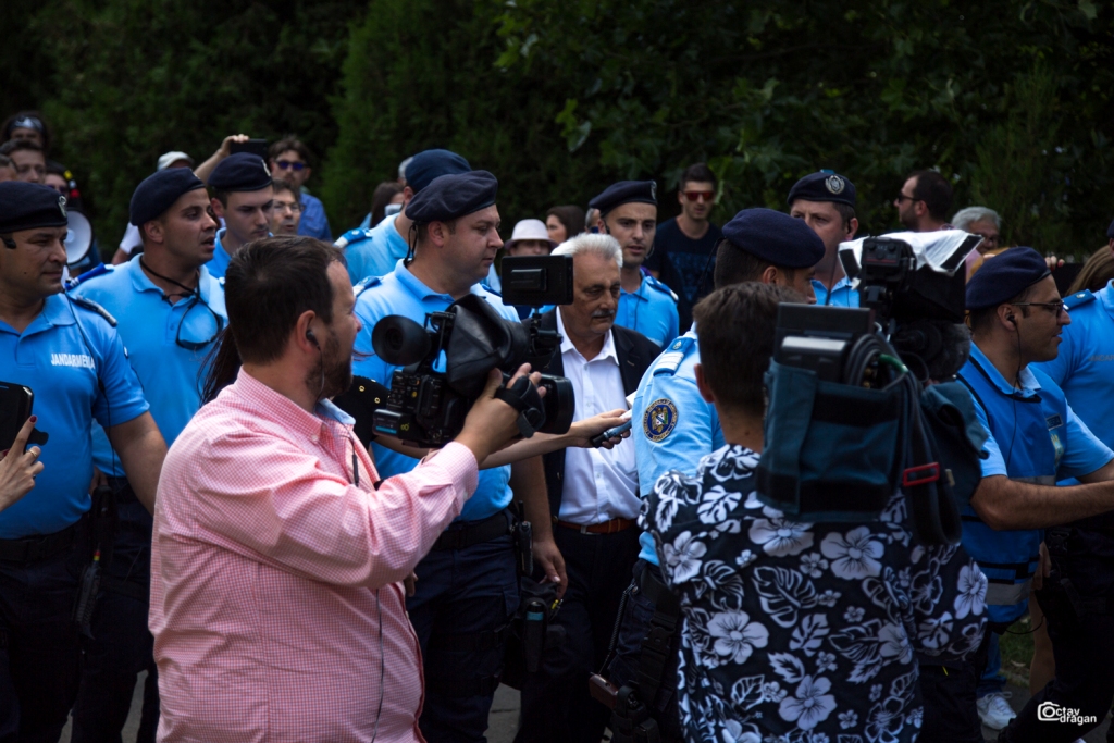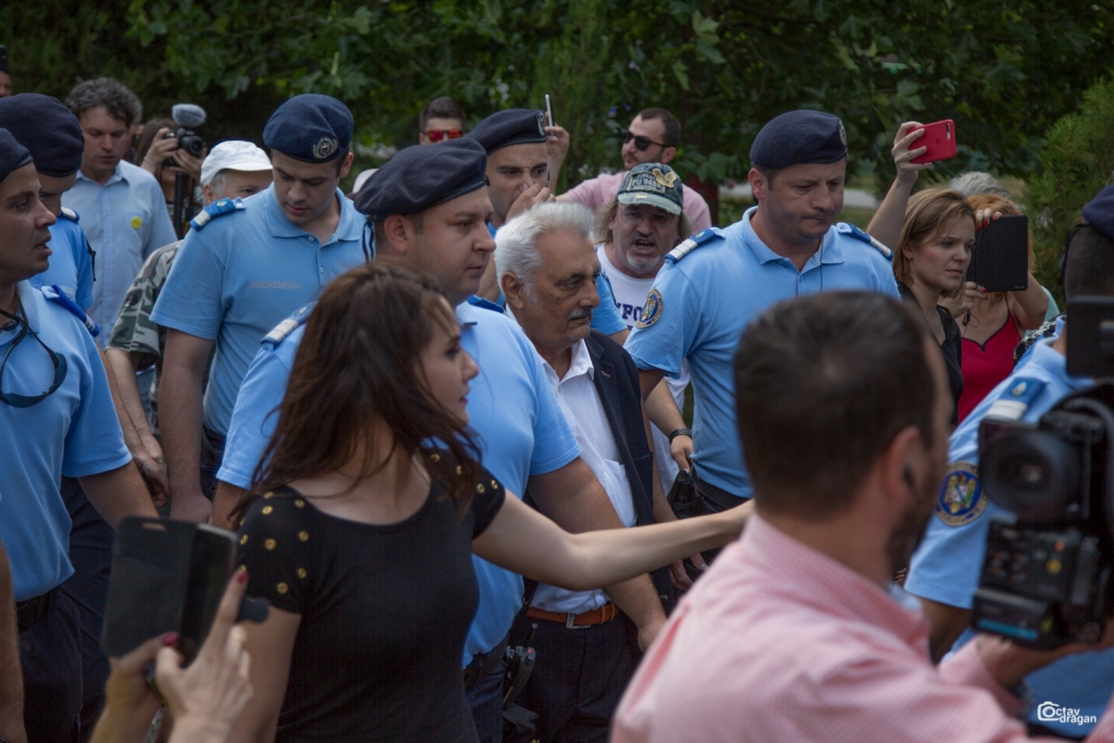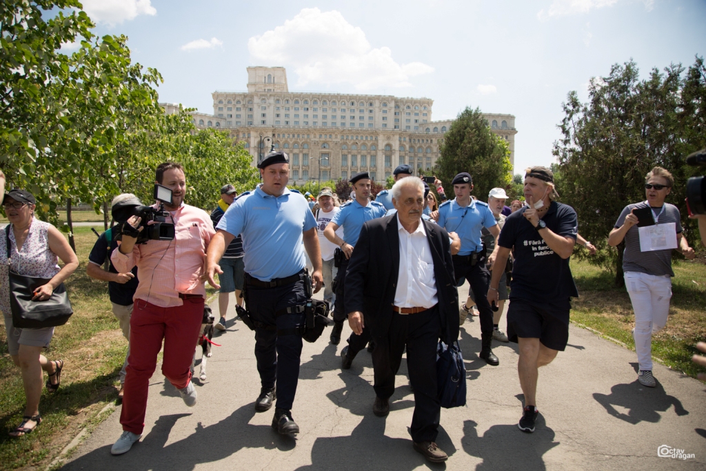 Nicolae Bacalbașa a fost condus de jandarmi prin Parcul Izvor. În imaginile surprinse de fotograful Octav Drăgan se văd cel puțin 10 jandarmi care îl protejează.